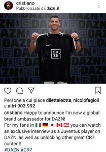 CR7 entra ufficialmente a far parte del gruppo DAZN con il quale ha stipulato una partnership fino al 2021.