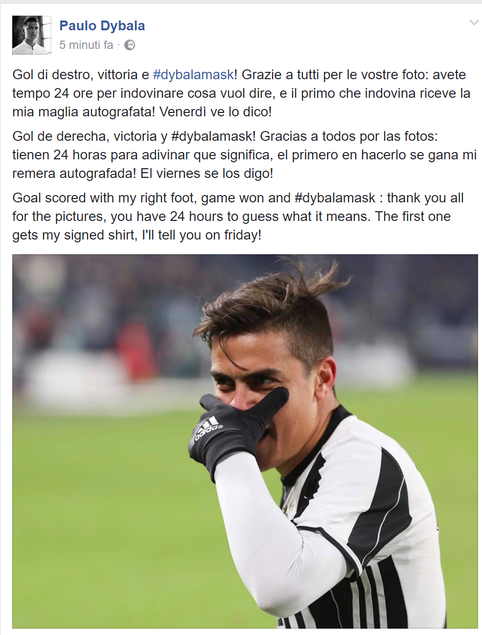 Come dimenticarsi poi dell’autore del primo gol bianconero? Ecco Paulo Dybala e la sua #dybalamask