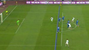 Altra chiamata (stavolta “non” chiamata) importante da parte di Manganelli, che non alza la bandierina in occasione del pareggio dei padroni di casa. Hamsik, infatti, viene imbeccato da Mertens in linea con la difesa della Juventus, bravo nello sfruttare un buco causato da Lemina e Bonucci. Lo slovacco trova, poi, la rete del pareggio con un destro che si infila sotto il sette, con Buffon incolpevole.