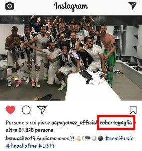 Proprio nella sfida d’andata, sugli spalti c’erano spettatori d’onore. Spinazzola, Caldara e Gagliardini erano allo Stadium. Il centrocampista dell’Inter era stato al centro di una polemica perchè i tifosi nerazzurri non l’avevano presa bene. E ieri il fatto si è ripetuto: Gagliardini ha messo like su Instagram alla foto spogliatoio di Bonucci, ma ha prontamente rimosso. I tifosi nerazzurri hanno visto e criticato, di nuovo.