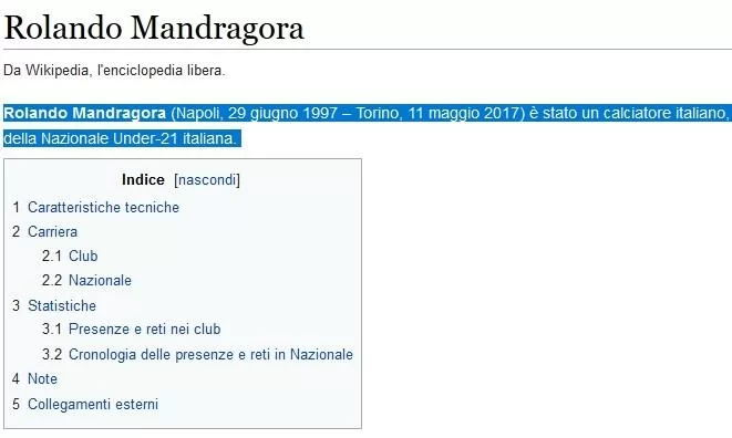 Deve aver passato un brutto momento Rolando Mandragora quando è stato avvisato della notizia, che di certo non lo ha divertito. Tutt’altro. Alcuni hacker sono entrati in azione modificando la pagina wikipedia del giocatore, citando la data della morte (oggi) e modificando i verbi dal presente al passato.