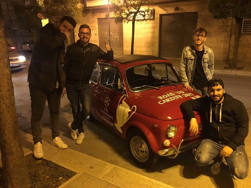 Da Altamura, provincia di Bari, quattro ragazzi si sono inventati una storia fantastica da tramandare, qualsiasi sia l’esito finale: partire dalla Puglia e arrivare in Galles con una 500 rossa. La macchina è già stata decorata con adesivi dedicati alla finale di Champions, e i quattro altamurani hanno già riscosso i primi consensi: qualche comparsata in radio e tv nazionali, giornalisti che si prestano per pubblicizzare la bellissima pazzia, e il club bianconero di Altamura che li ha invitati a vedere la vittoria della Coppa Italia a Roma contro la Lazio. Una straordinaria avventura che, tra andata e ritorno, supererà i 5mila chilometri totali, e che passerà anche da Amatrice, Milano e Torino, dove, si augurano, qualcuno della dirigenza bianconera li accolga con un pass per la finale di Champions League.