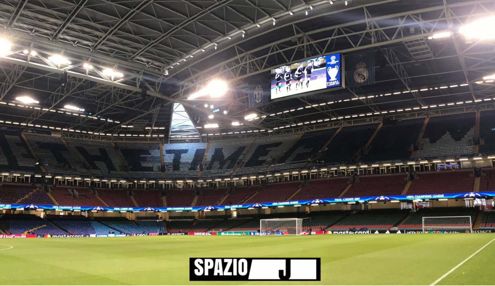 Gli animi sono caldi, i tifosi sono pronti. Ecco le prove generali delle coreografie che le due tifoserie insceneranno domani prima del fischio d’inizio della finale di Champions League sugli spalti del Millennium Stadium di Cardiff.