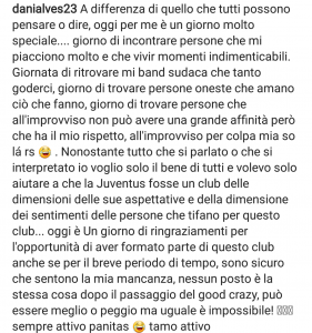 In occasione del match amichevole contro la Juventus, Dani Alves su Instagram ringrazia la Juventus. Ha dato molto dispiacere ai tifosi della Juve nel momento in cui si è scagliato contro la Vecchia Signora, dopo la rescissione del contratto, ora Dani Alves prova a spegnere le polemiche.
