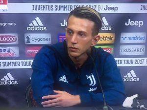 ”Con chi mi piacerà giocare di più? Quando vedi i giocatori della Juventus pensi che sono tutti forti. Sarà bello giocare con ognuno di loro. Quando inizi a giocare con questi campioni aumentano anche le possibilità di divertirsi. Sono qui per aiutare la squadra a continuare a fare quello che ha sempre fatto in questi sei anni, per dare una mano in più. È il ripetersi nella vita che è difficile, perciò credo di essere qui per dare una mano, prima di tutto, a vincere il settimo scudetto. Per quanto riguarda la Champions League sicuramente l’obiettivo sarà arrivare tra le prime quattro, io aiuterò a fare ciò. Riguardo ciò che si dice sul mio valore di mercato dovremmo essere contenti per il fatto che noi giovani italiani, dopo un periodo negativo, veniamo di nuovo presi in considerazione”.