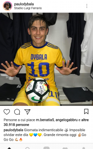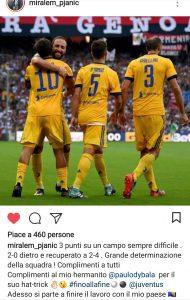 Lo stesso punto di vista contraddistingue gli ultimi post di Khedira e Pjanic. Senza la determinazione che la squadra ha dimostrato nei novanta minuti, non si avrebbe ribaltato il risultato, da 2-0 a 2-4, e non mancano i complimenti al vero top player di questa squadra, che anche stasera ha firmato una tripletta e si è portato a casa il pallone, Paulo Dybala.