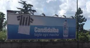Una maglia a strisce verticali bianche e nere che immersa in acqua e candeggina diventa completamente bianca e a caratteri cubitali la scritta “toglie ogni macchia”. Ecco l’ultima trovata pubblicitaria della candeggina Candidalba che è apparsa ultimamente sui cartelloni pubblicitari di Napoli e dintorni. Il riferimento ai rivali della Juventus è evidente.
