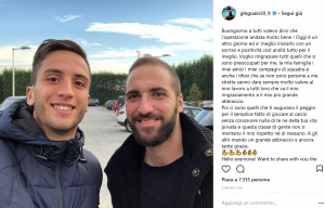 Le attenzioni dei tifosi di Juventus e Napoli sono quasi tutte per lui. Gonzalo Higuain è in forte dubbio per la trasferta dei bianconeri al San Paolo e, pochi minuti fa, il Pipita ha pubblicato una foto sul suo profilo Instagram in compagnia di Rodrigo Bentancur, comunicando la riuscita dell’operazione e… togliendosi qualche sassolino dalla scarpa.