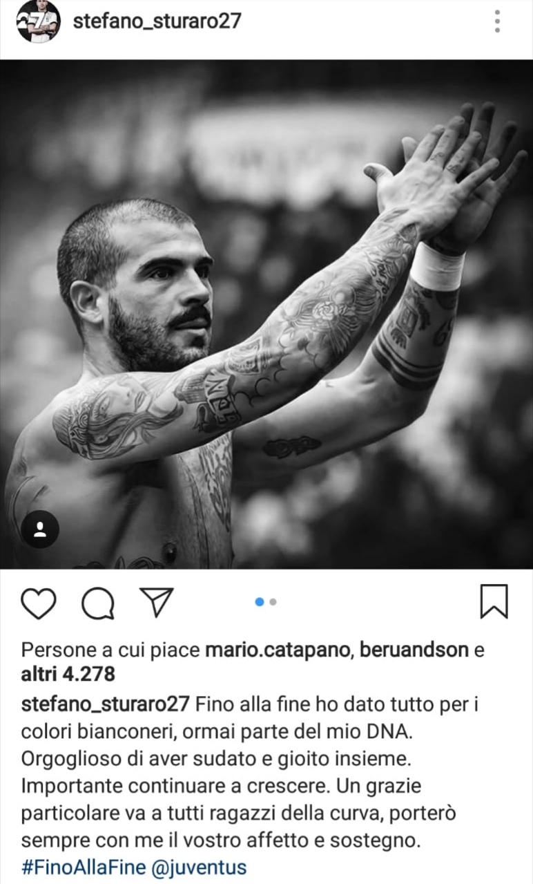 Arrivata l’ufficialità del trasferimento allo Sporting Lisbona, giunge puntuale anche il saluto di Stefano Sturaro alla Juve e ai suoi tifosi tramite un post sui social network.