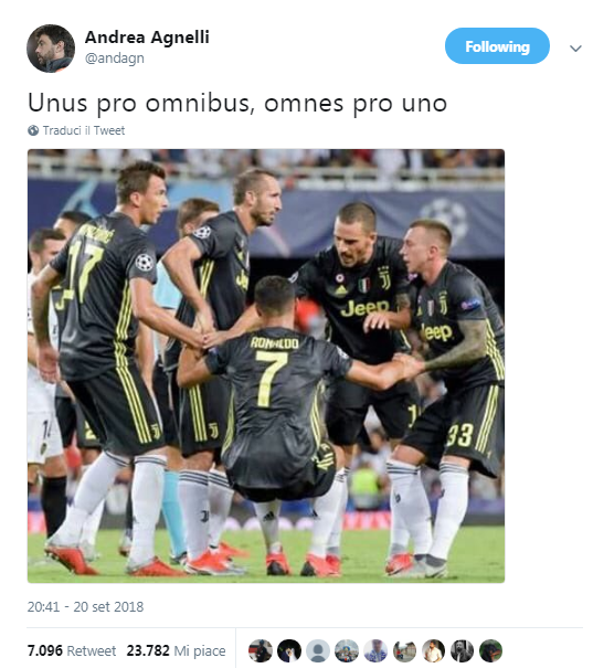 La posizione della società è ben chiara, la dirigenza sta col giocatore (come dimostrato anche dal post di Andrea Agnelli su Twitter: “Unus pro omnibus, omnes pro uno”, uno per tutti, tutti per uno, citando Dumas), ma in separata sede il management bianconero parlerà col calciatore, ribadendo che non saranno tollerati altri cenni di reazione. Nemmeno se sei Cr7.