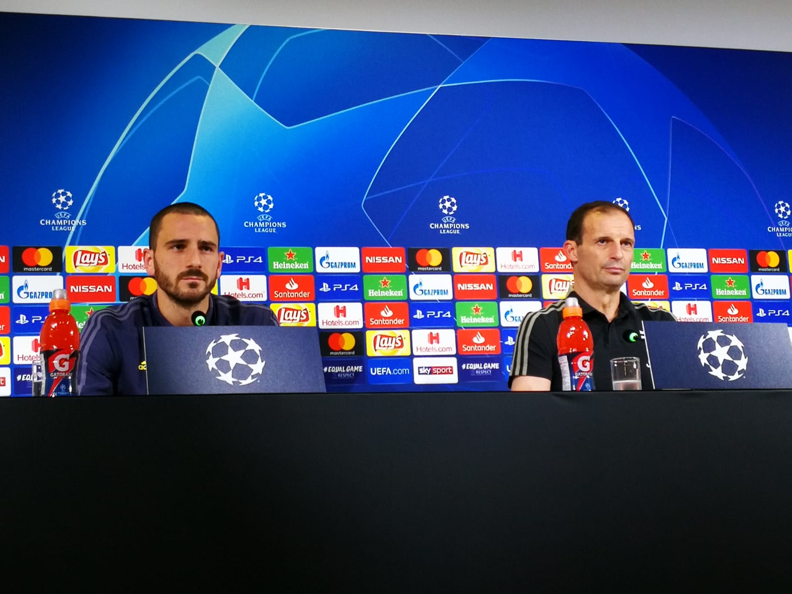 Massimiliano Allegri è intervenuto alle 19.20 dalla sala stampa dell’Allianz Stadium in conferenza. L’allenatore bianconero ha presentato il match di domani contro il Manchester United. Al suo fianco c’è stato Leonardo Bonucci.