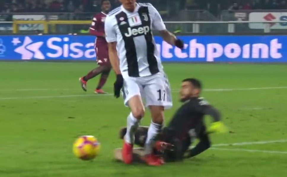 Minuto 53, primo episodio: contatto in area tra Belotti e Matuidi. “Belotti salta altissimo, Matuidi allarga leggermente il braccio destro ma il contatto appare lievissimo. Decisione corretta“. Molto più complicata, invece, la seconda, al minuto 54 per un contatto tra Zaza e Sandro: “La trattenuta di Sandro non è momentanea ma inizia col pallone in possesso di Zaza e si conclude solo nel momento in cui l’attaccante del Torino cade a terra. Si obietterà: anche Zaza trattiene la maglia di Sandro. Vero ma c’è un elemento fondamentale: il pallone è nel pieno possesso di Zaza e lo stesso attaccante non esaspera la trattenuta. non impedendo l’azione dell’avversario. Questo è calcio di rigore ma solo da moviola nella vigenza del protocollo attuale. E’ infatti un’azione irregolare nel pieno controllo dell’arbitro che non può essere richiamato alla review, perchè si basa sulla valutazione soggettiva dell’entità della trattenuta“.