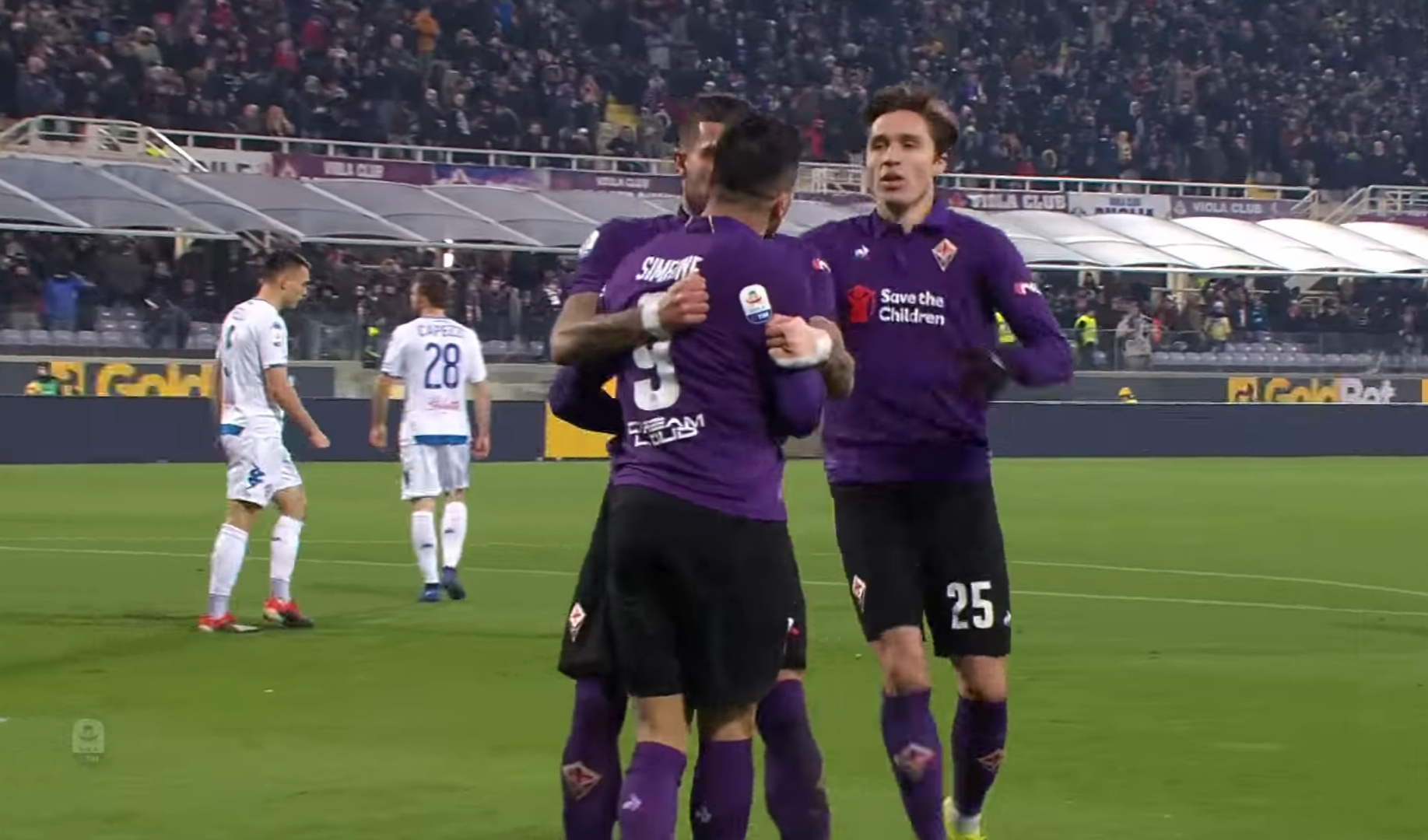 Giovanni Simeone, figlio del Cholo, è stato premiato in occasione del Premio Maestrelli. Il giocatore della Fiorentina è tornato anche sull’eliminazione in Champions dell’Atletico Madrid dal padre Diego: “E’ giusto che sia passata la Juventus. Sono molto forti e hanno fatto tre gol, uno in più dell’Atletico”.