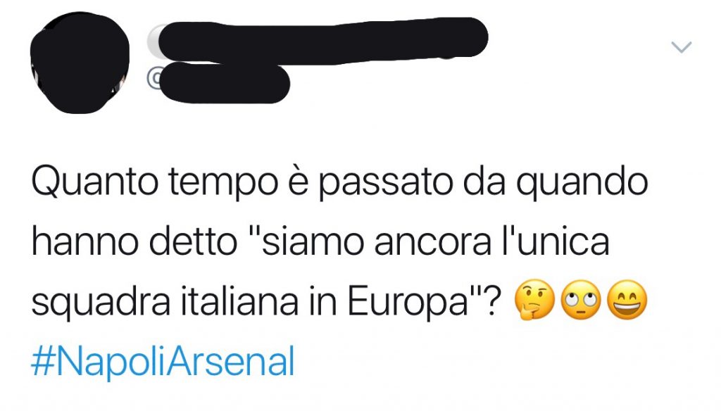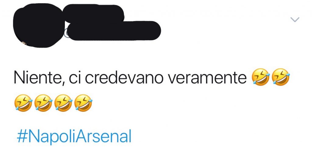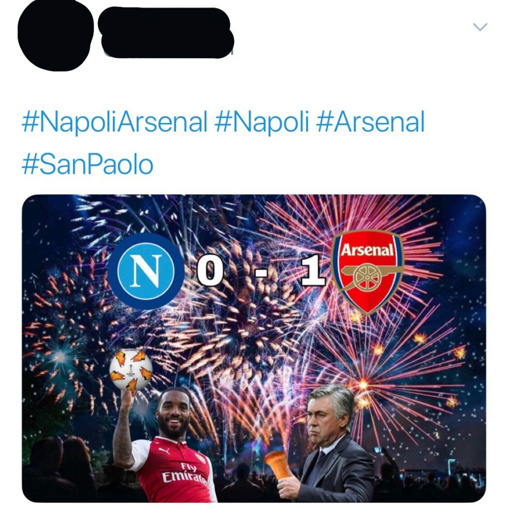 L’Arsenal ha eliminato il Napoli con una rete di Lacazette, fermando Ancelotti nei quarti di finale dell’Europa League. Nessuna rimonta dei partenopei che si devono arrendere al gioco dei londinesi. Amarezza per i tifosi napoletani, ironia per qualche tifoso bianconero che sceglie Twitter per scherzare sulla sconfitta dei rivali.