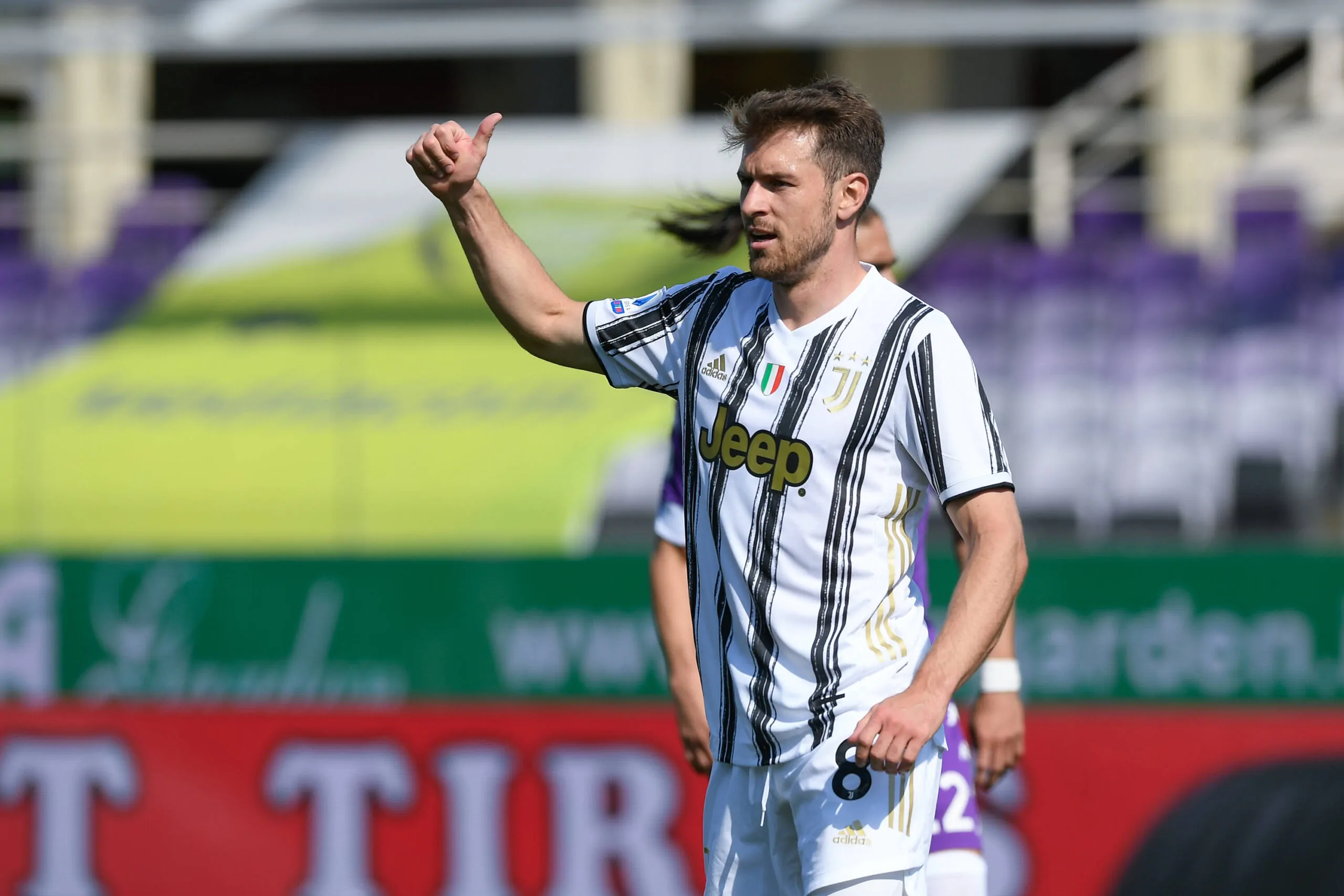 Aaron Ramsey of Juventus FC gestures during the Serie A match between Fiorentina and Juventus at Stadio Artemio Franchi, Florence, Italy on 25 April 2021. Photo by Giuseppe Maffia. Florence Stadio Artemio Franchi Florence Italy Copyright: xGiuseppexMaffiax SP24-22-092