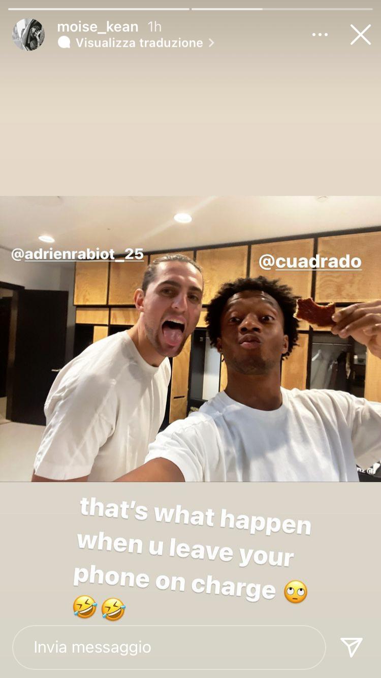 Nello spogliatoio della Juventus Adrien Rabiot e Juan Cuadrado si sono resi protagonisti di uno scherzo ai danni di Moise Kean.