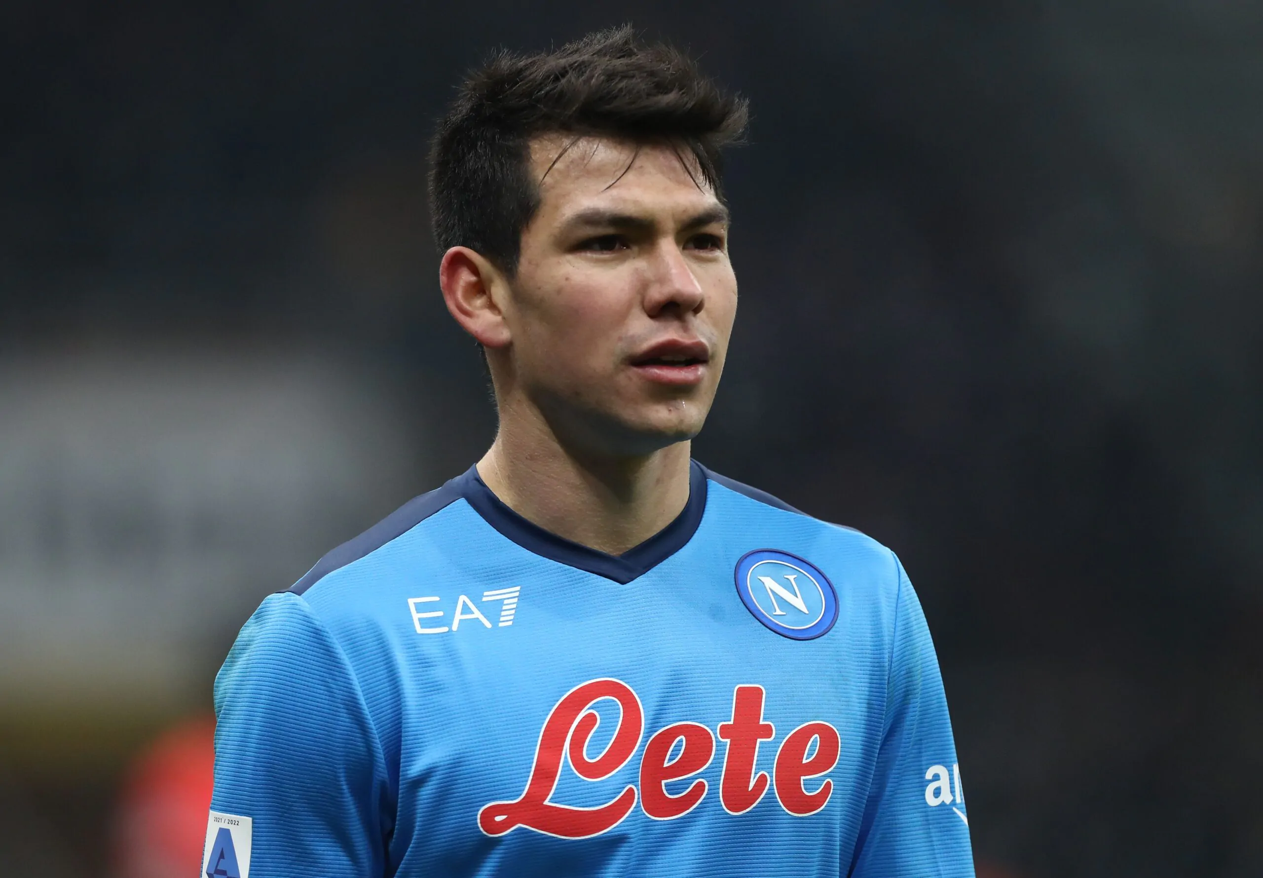 MILAN, ITALY - DECEMBER 19: Hirving Lozano of SSC Napoli looks on during the Serie A match between AC Milan and SSC Napoli at Stadio Giuseppe Meazza on December 19, 2021 in Milan, Italy. (Photo by Marco Luzzani/Getty Images)