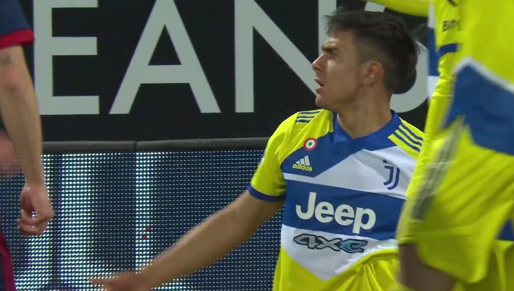 La Juve è già sotto contro il Cagliari: a sbloccare la partita ci ha pensato Joao Pedro dopo pochi minuti di gioco. Appena dopo essere andata sotto, la Signora ha provato una reazione culminata con il contatto in area di rigore tra Dybala e Altare.
