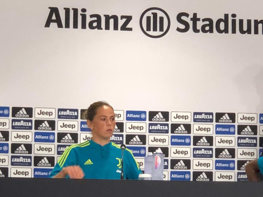 “Ho scelto la Juventus perché ho giocato per cinque anni al Bayern e volevo nuove sfide, l’Italia mi è piaciuta per la crescita dei club femminili. Per questo ho scelto la Juve. Oggi sono stata a Vinovo per la prima volta, è stato bello vedere tutte per la prima volta, anche ieri è stata una bella giornata, è tutto nuovo. Mi è piaciuta l’atmosfera, questo è solo l’inizio vediamo cosa succede poi. È una bella domanda cosa penso del campionato italiano, non ho un’idea precisa. Ho visto la Juve in Champions. Il calcio è di alto livello, mi è piaciuto molto. Il calcio italiano per me è una sorpresa e mi farò un’idea nelle prossime settimane.
