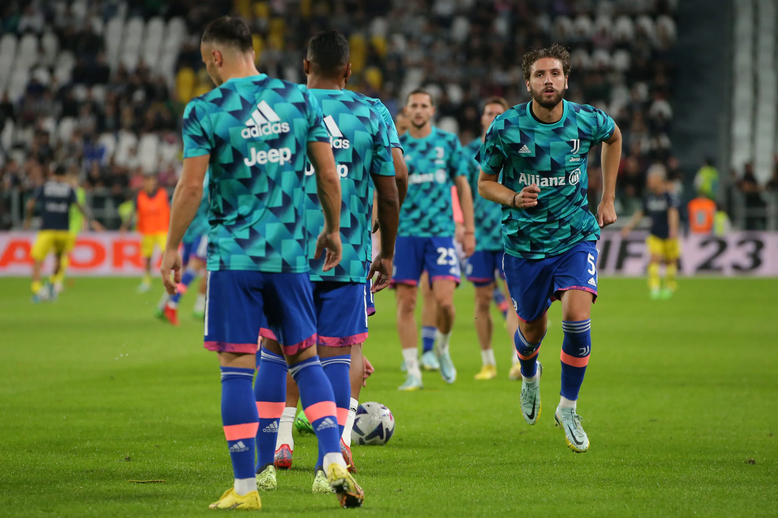 TURIN, ITALY - OCTOBER 02: Manuel Locatelli of Juventus during the warm up prior to the Serie A match between Juventus and Bologna FC at Allianz Stadium on October 02, 2022 in Turin, Italy. (Photo by Jonathan Moscrop/Getty Images)